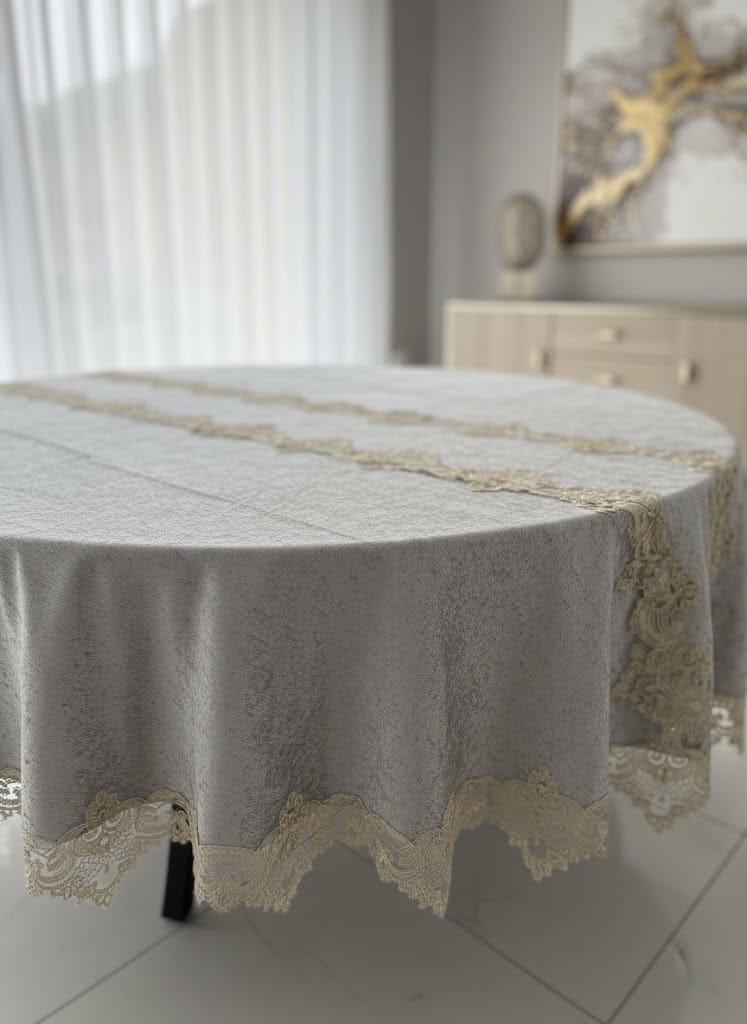 Okrugli stolnjak od mekane kadife s čipkom je prekrasan dodatak bilo kojoj trpezi. Ovaj stolnjak ima luksuzan izgled i osjećaj, zbog meke teksture kadife koja je ugodna na dodir i vizualno privlačna. Uz to, čipka na rubovima stolnjaka dodaje sofisticiranu notu koja ga čini još posebnijim.