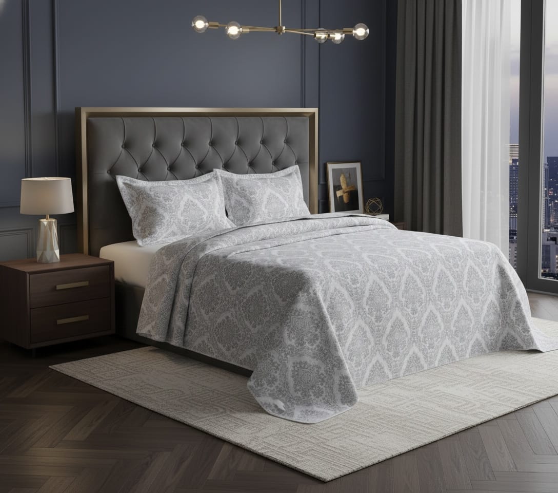 Udobnost i luksuz na vrhunskom nivou. Novi luksuzni prekrivač za krevet i dvije jastučnice predstavljaju savršenu kombinaciju stila i funkcionalnosti. Napravljen od visokokvalitetnih materijala, ovaj set će dodati dotok sjaja i elegancije u vaš spavaći prostor.